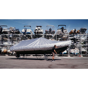 The 150D Grey Boat Cover is highly durable with excellent ventilation.
