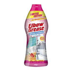 The all new Elbow Grease Pink Blush Cream Cleaner with micro crystals is ideal for use on tough and stubborn stains. The mild abrasive action makes it perfect for removing dirt and creating a shiny surface on your hobs, ovens and sinks in the kitchen, as well as bathroom surfaces such as tiles and baths. With a pink blush scent Elbow Grease makes cleaning a delight in your home.