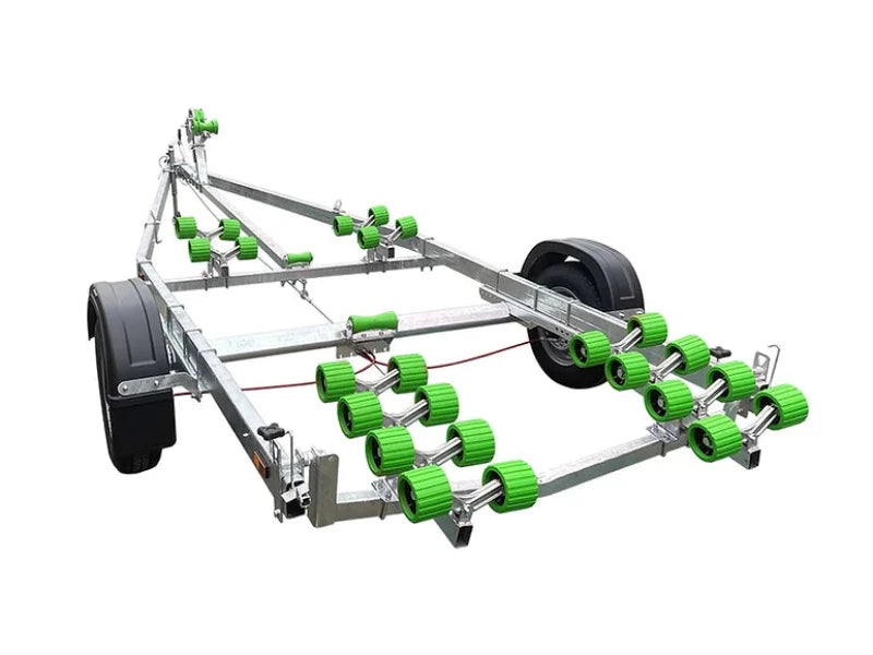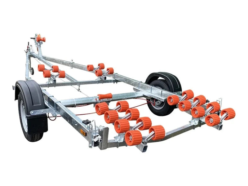 Everything on this trailer is adjustable, so it can fit most hull shapes. Overall length: 6.05m. Overall width: 2.20m