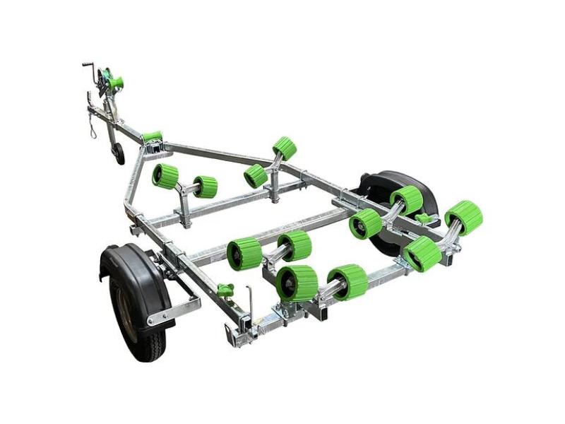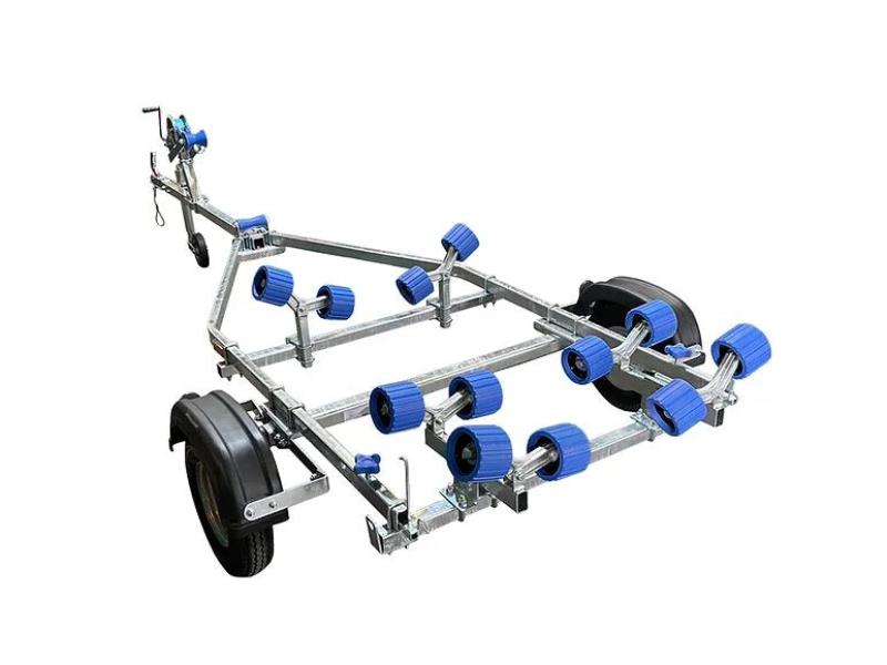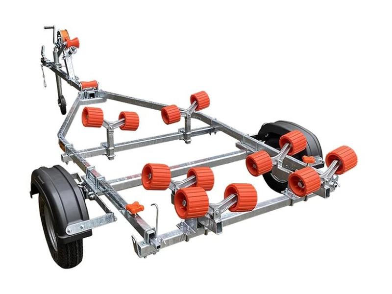 Everything on this trailer is adjustable, so it can fit most hull shapes. Overall length: 3.85m, Overall width: 1.57m