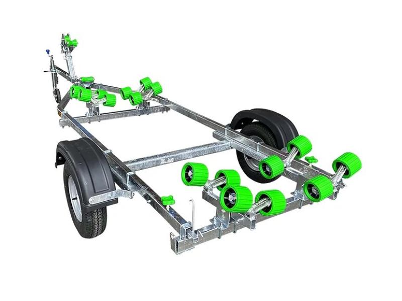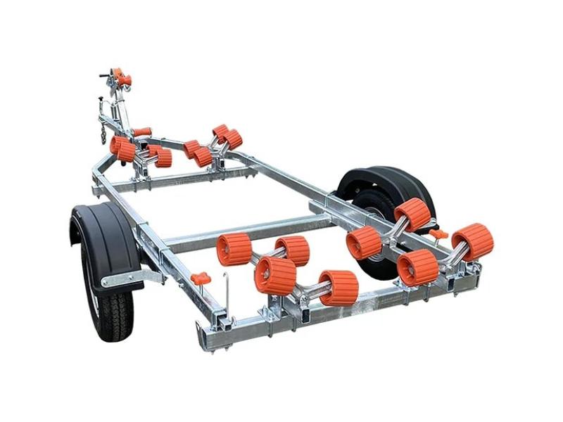 Everything on this trailer is adjustable, so it can fit most hull shapes. Overall length: 4.75m, Overall width: 1.57m