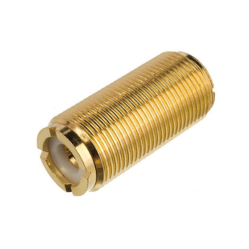 2" (5 cm) PL-258 gold barrel connector with two gold-plated nuts
