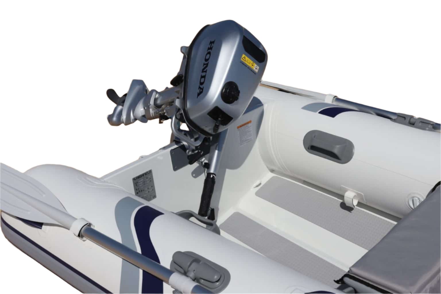 The goldilocks middle child – lightweight, roomy yet still compact. The jump up to a 15 degree deadrise means you can go further and, thanks to its aluminium hull, this is the perfect tender for worry-free beaching!