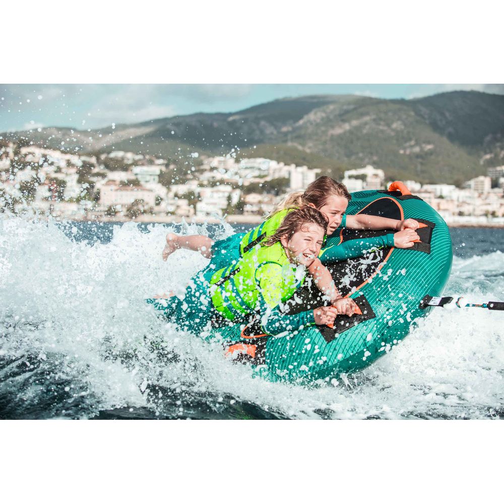 Feeling hot? This Droplet can cool down one happy rider in no time! The Droplet is fully covered with double-stitched nylon over heavy duty PVC bladders. A convenient quick-rope connector allows easy rope connection and detachment. You'll appreciate the convenience of the 4 handles with comfy neoprene knuckle guard and the fastness of it's one way Boston valve.