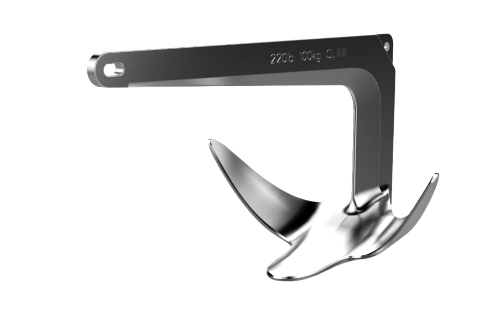 Designed based on anchors used to secure oil rigs in the North Sea. The Claw anchor is constructed of high-grade stainless steel. The Claw anchor sets effortlessly and holds in a variety of sea beds and stows easily on the bow roller of most boats.