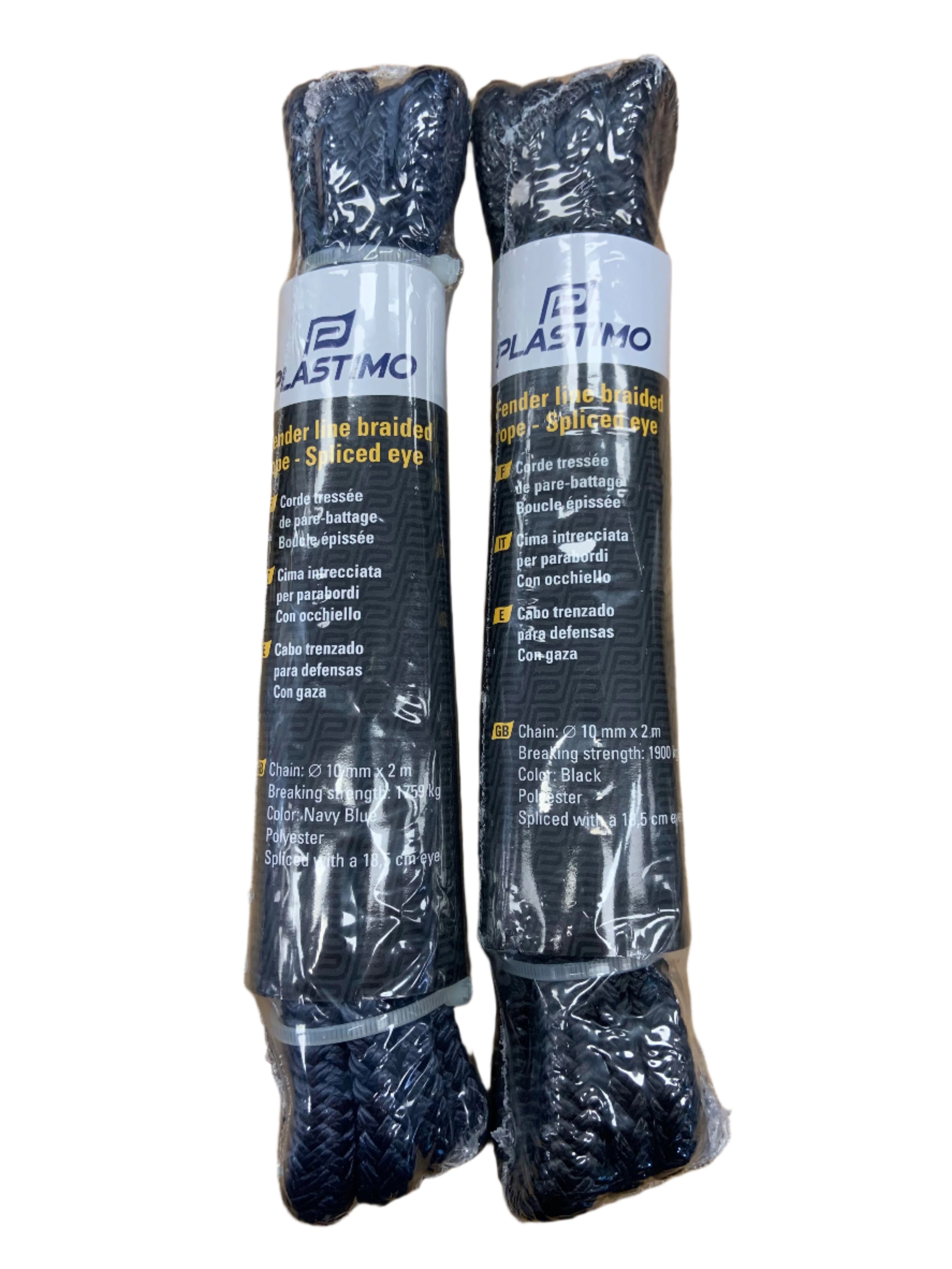 Plastimo 10mm 2mtr Black Fender line braided rope with spliced eye