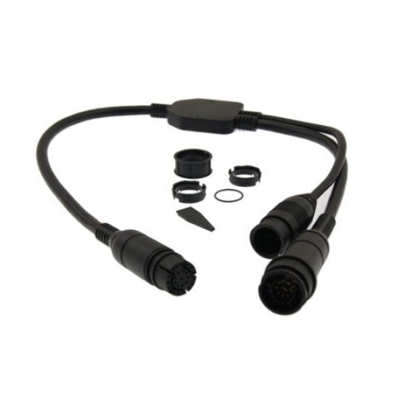 Raymarine Y-Cable (9 & 8 pin to 9 pin) to attach a DownVision (CPT-1xx) Transducer & an Airmar (8 pin) transducer to AXIOM 7 DV (9 pin)