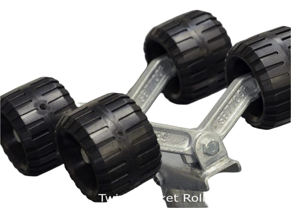 - Adjustable forward cross member fitted with 2 sets of fully adjustable roller pods with 4 rollers each. 8 in total.