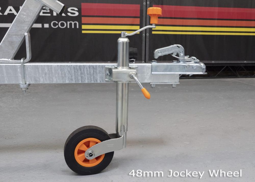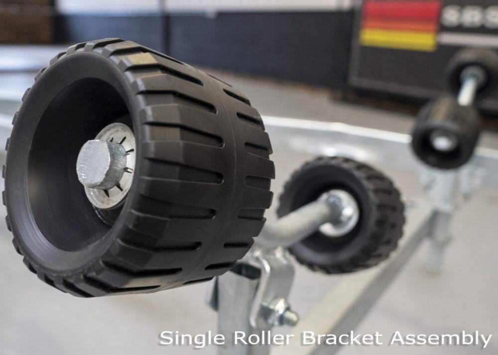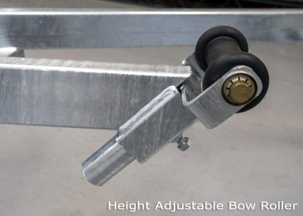 - Adjustable forward cross member fitted with 2 sets of fully adjustable roller pods with two rollers each. 4 in total.