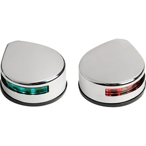 LED navigation lights, sold per pair, housed in a stainless steel 316 body. These are Starboard Green and Port Red navigation lights suitable for vessels under 20 metres in length. Each light has a 112.5° arc of bright LED light, which is more energy efficient than incandescent light bulbs.