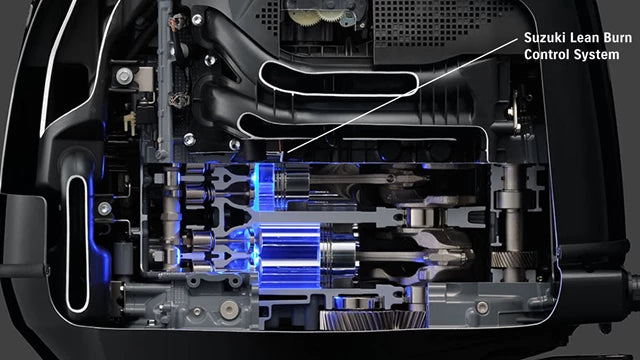 - Suzuki Lean Burn Control: Our flagship fuel-management technology constantly monitors engine sensors to deliver the leanest possible fuel-to-air ratio. You’ll see a dramatic improvement in fuel economy, particularly at cruising speeds.