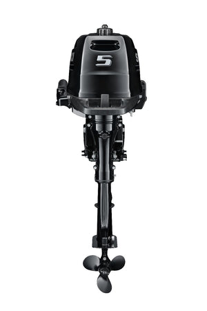 The DF5 outboards come equipped with recoil start, a tiller handle featuring twist throttle, Forward-Neutral-Reverse gears, water cooling, an integral 1.5 litre fuel tank, and a durable aluminium propeller. They also offer an optional 12V amp alternator and the ability to connect an external fuel tank for extended outings.