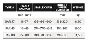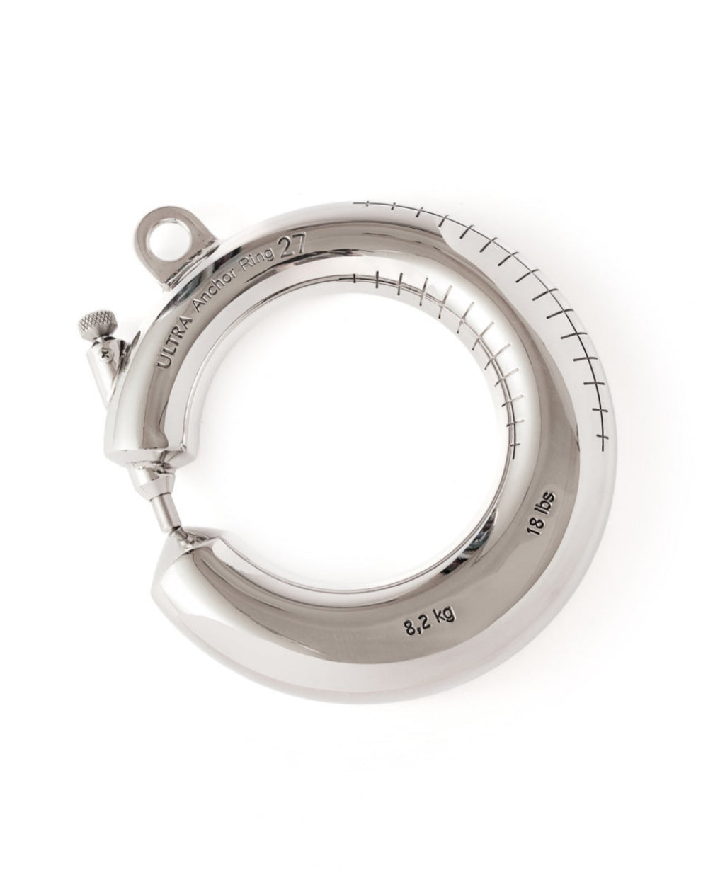 Designed to replace a chain or rope weight (Kellet). In case of anchoring with limited scope (busy anchorage or limited anchorage area), the Ultra Marine Anchor Ring increases safety by adding weight to the anchoring system. By adding extra weight on the chain, the Ultra Marine Anchor Ring reduces the vessel swing area and works as a shock absorber, improving comfort at anchor by reducing boat movement.